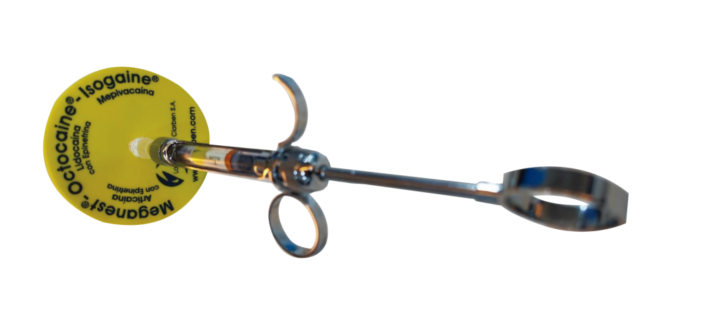 Jeringa de acero inoxidable de alta calidad. Diseñada para proporcionar una mayor comodidad durante el proceso de inyección.